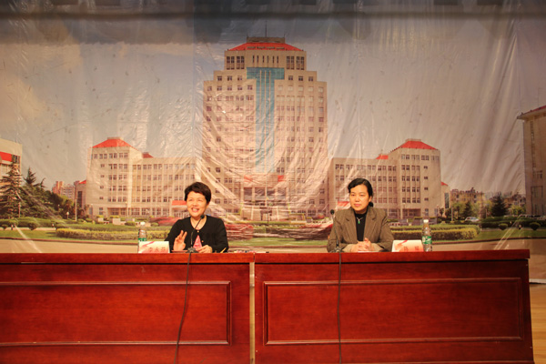 会谈结束后,李永芬董事长结合自己的人生经历和感悟,在扬子津校区昭文图书馆报告厅为我校师生作了题为《追寻生命的价值》的报告,陈耀副校长主持报告会。商学院、建筑科学与工程学院、环境科学与工程学院400多名师生现场聆听了报告。