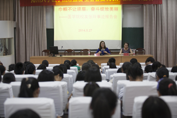 2014年5月27日下午,共青团扬州市江都区委副书记、我校药学专业2008届校友张玲应邀在医学院报告厅为母校师生作报告。张玲在报告中讲述了自己从一名普通的大学生村官一路奋斗前行的职业历程,为在校师生带来了积极奋进的正能量。