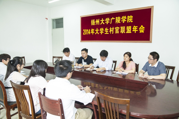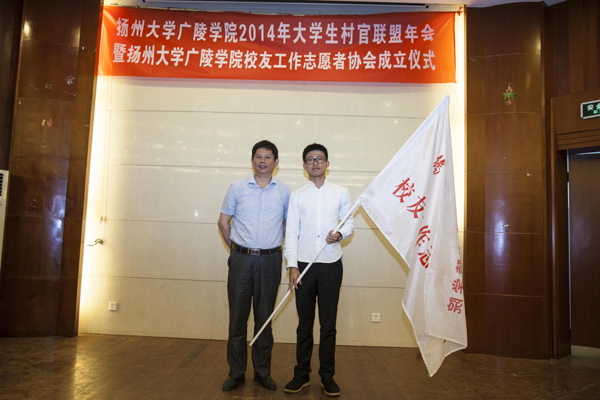 2014年6月6日下午,由广陵学院校友会、院团委及院大学生村官联盟联合主办,院校友工作志愿者协会承办的“扬州大学广陵学院2014年大学生村官联盟年会暨扬州大学广陵学院校友工作志愿者协会成立仪式”于江阳路南校区报告厅举行。广陵学院院长陈晓明,院党委书记殷新春,院党委副书记陈俊,院大学生村官联盟副理事长、扬州市江都区武坚镇副镇长唐勇圣,院大学生村官联盟常务副理事长、金坛市溪城大学生村官创业园总经理陈学谦,泰兴市虹桥镇上元村党支部副书记、泰州市增益物流有限公司总经理陈兵,院团委老师,各系教师代表,院、系校友工作志愿者协会成员,学生代表出席了本次活动。