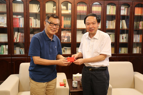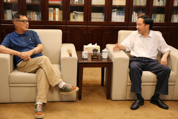 8月27日上午,焦新安校长在扬州大学张謇研究所亲切会见原全国政协常委、原全国工商联常务副主席、我校董事会名誉董事长、张謇嫡孙张绪武,江苏省人大常委、南通市政协常委、张謇曾孙张慎欣一行。淮扬文化研究中心主任周新国教授陪同会见。