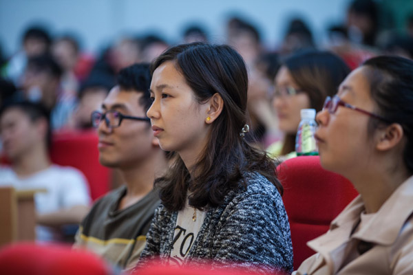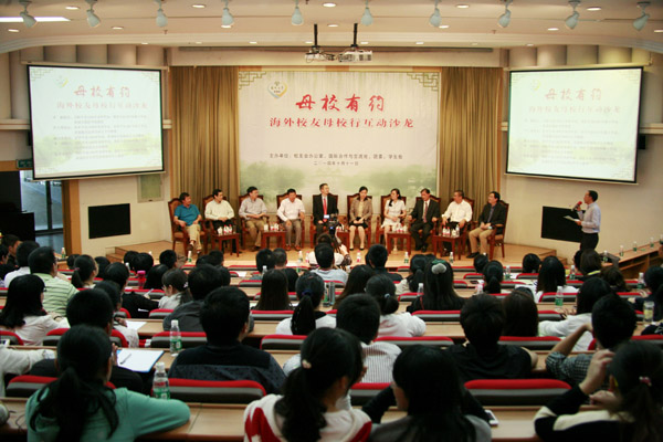 校友们分别介绍了各自在海外求学及工作的经历和见闻,他们流露出的对母校的深情眷恋和对学弟学妹们的热情关爱,深深打动了在场的每一个人。学长们的真诚与热情、幽默和风趣使学弟学妹们倍感亲切。现场气氛轻松活泼,温馨愉悦,不时响起一阵阵热烈的掌声。