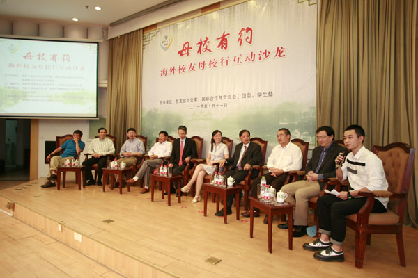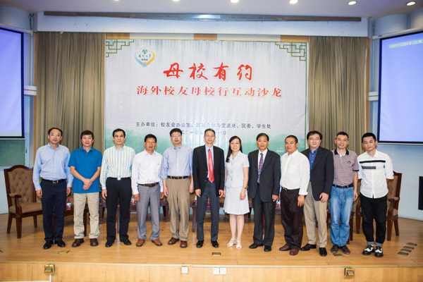 美国贝勒医学院李毅副教授、美国俄克拉何马州立大学严六零副教授、美国南达科塔州立大学顾兴友教授、美国明尼苏达大学李玲教授、美国拉什大学芝加哥医学中心徐秀龙副教授、美国阿拉巴马州立大学吴红专副教授、美国MTI集团技术主管毛健、美国生物梅里埃公司首席生物信息研究员李俊州、美国阿马西亚布拉什有限公司负责人雷兆寿等9位来自北美的校友与在校生互动交流。