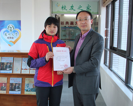 2015年1月7日,扬州大学教育发展基金会收到体育教育专业2012级王旭同学的捐款1000元,用于资助体育学院家庭经济困难的学生。