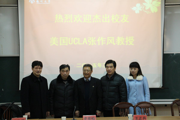 2015年3月10日下午,我校临床医学专业1975届校友、加州大学洛杉矶分校(UCLA)公共卫生学院副院长张作风教授,应邀回母院,专门为MBBS留学生作了题为“恶性肿瘤的危险因素和预防策略”学术报告。张作风校友的报告融理论知识与生活实际为一体,既“高大上”又“接地气”,风格活泼,受到了留学生的热烈欢迎,现场气氛活跃。