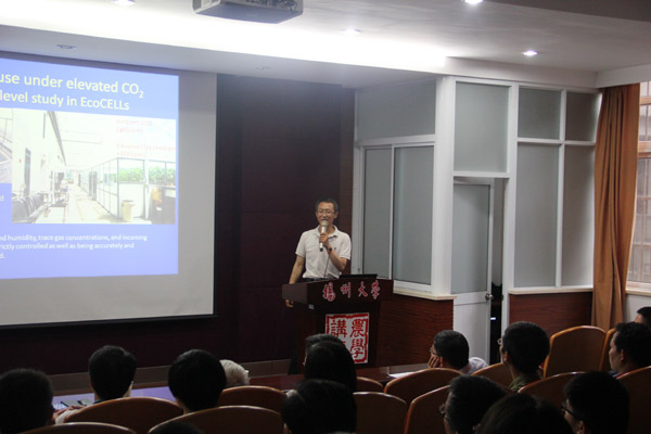惠大丰校友的报告以一些全球气候变化研究案例说明了实验数据模型如何帮助我们理解全球气候变化,尤其是降雨量的变化,对陆地生态系统带来的影响。报告全过程用英语进行,报告会吸引了众多教师和研究生前来参加。师生们与惠大丰校友进行了充分的交流与互动。