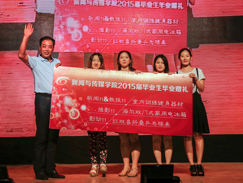 2015年6月16日,新闻与传媒学院2015届毕业生向学院赠送乒乓球桌、室内健身器材等价值3200元的物品,以表达同学们对母校和老师的感恩之情,祝愿老师身体康宁。冯锐院长代表学院接受了毕业生的情义和祝福。