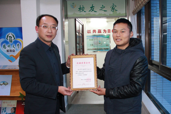 2015年12月22日,体育学院体教1401班仲磊同学来到扬州大学教育发展基金会,向“我不孤单”成长基金项目捐款500元。谈起捐款事由,仲磊表示,自己有一个“自助助人”的梦想,因为在自己的成长历程中一直受到政府、学校和社会爱心人士的关心和帮助,进入大学以来,先后获得伯藜助学金、金升校友助学金、费孝通立德奖学金等资助,所以希望尽自己的一点微薄之力,让爱心传递。