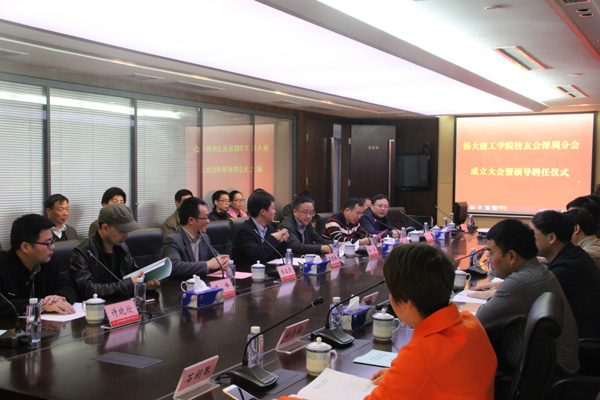 2015年12月20日,建筑科学与工程学院深圳校友分会成立大会暨硕士生导师聘任仪式在江苏华建深圳分公司举行。校党委副书记、副校长叶柏森,江苏华建副董事长、总经理、深圳分公司总经理宗有农,江苏华建副总经理、华建学院院长陆俊出席活动并讲话。校党委组织部、学院负责同志,校粤港澳校友会会长、为海集团总裁杨根宏以及20余名建工学院校友出席成立大会。