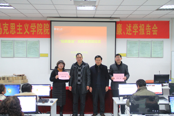 2015年1月8日下午,马克思主义学院2015年“兄弟基金“奖教金颁奖仪式在文汇路校区23号楼计算机中心举行。院党委书记吴荣军宣读评选结果,院长佘远富向获奖单位和个人颁奖。