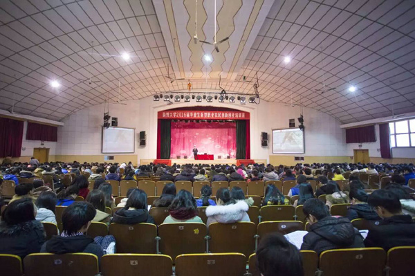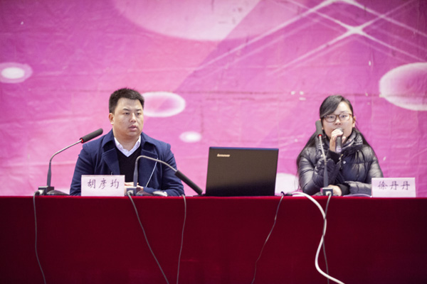 2016年1月8日上午,我校工商管理专业2009届校友、青年企业家胡彦均应邀为我校2016届涉农专业毕业生新型职业农民创新创业培训班作报告。报告会由动物科学与技术学院团委副书记徐丹丹主持。文汇路校区全体学员参加了本次报告会。