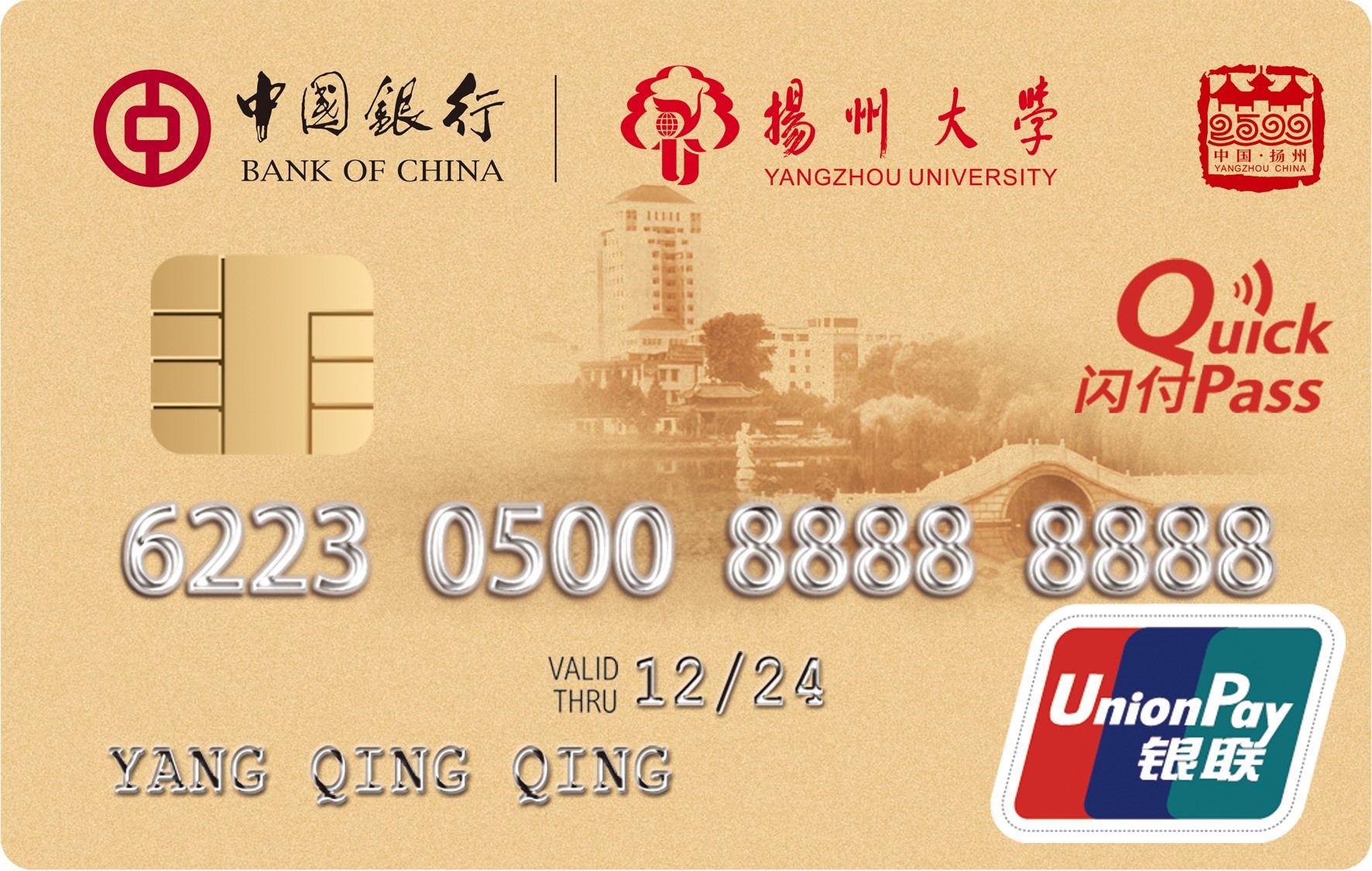 校友卡采用专属卡面来确定校友身份,增加荣誉感、自豪感;卡面上定制校名,让持卡人铭记自己是扬大人,以扬大为荣。同时,校友可以在卡面打印扬大学习期间的相关信息,如学号、专业、班级、宿舍等,寄托校友对扬大的深情。