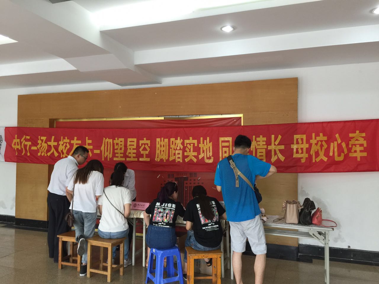 2015年9月,校友会与中国银行扬州分行签约携手推出“中银扬大校友联名信用卡”。值此毕业季,中国银行扬州分行各营业部在校内推广办理校友信用卡,得到广大在校师生积极响应。
