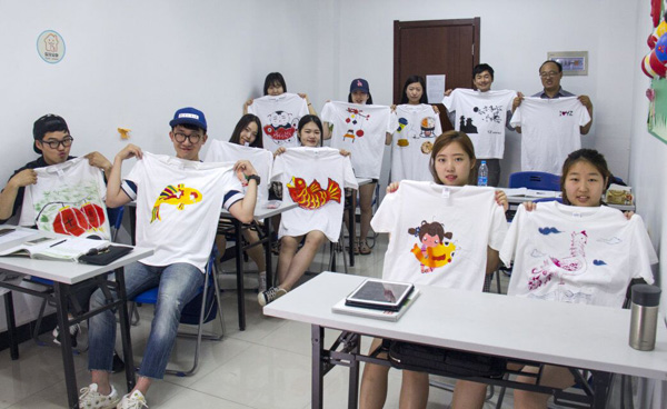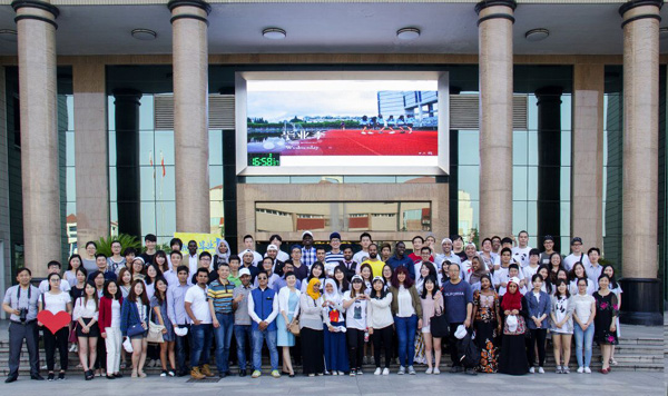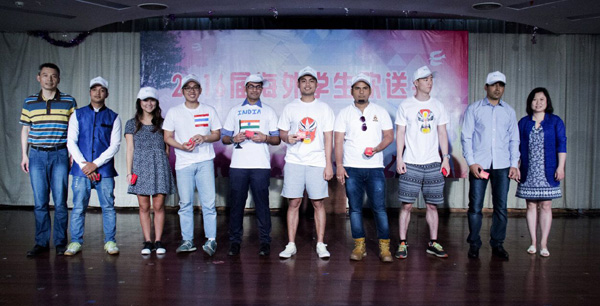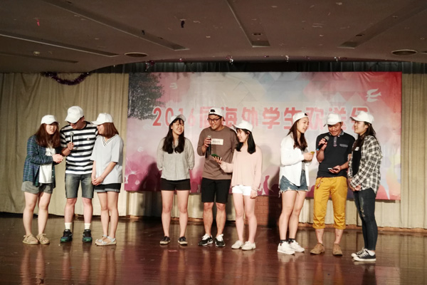 2016年6月17日下午,海外教育学院在荷花池校区大学生活动中心二楼多功能厅举办2016届海外学生欢送会。来自埃及、比利时、朝鲜、韩国、几内亚、美国、塔吉克斯坦、苏丹、乌兹别克斯坦、印尼等国家和中国台港澳地区的80余名海外学生身穿自己手绘的纪念T恤参加了欢送会。