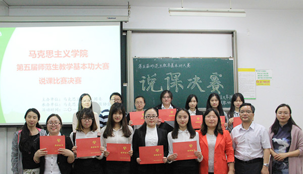 2016年6月7日晚,马克思主义学院第五届师范生教学基本功大赛之说课决赛在文汇路校区7号楼举行。政教专业2001届校友、扬州市翠岗中学副校长仇清泉老师,政教专业2006届校友、扬州市新华中学吕娟老师应邀担任说课决赛评委嘉宾。
