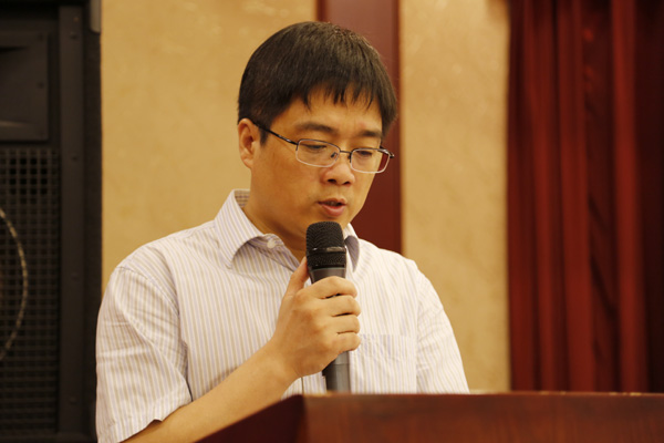 何成达代表学院对无锡校友联谊会的成立表示祝贺,希望校友联谊会加强与校友总会以及在锡校友间的沟通和联系,关注学校事业发展,把校友联谊会办成校友事业成长的阶梯、发展的平台和感情的精神家园。