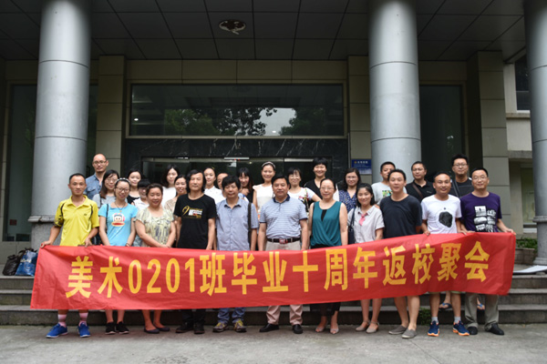 2016年8月6日,美术0201班校友毕业10周年返校聚会在美术与设计学院举行。近30名校友回到阔别十载的母校,开展了“十年再聚首,久别话重逢”为主题的师生座谈会,重温同窗情,再叙师生缘。美术与设计学院副院长李玫、原艺术学院党委书记华干林以及部分老师等出席活动。