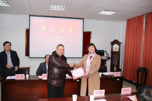 颁奖仪式后,刘芳向纪志君校友颁发了“创业导师”聘书,纪志君校友受聘为大学生创业导师,并为学生作了“奋斗的青春最美丽——我的创业故事”主题报告。