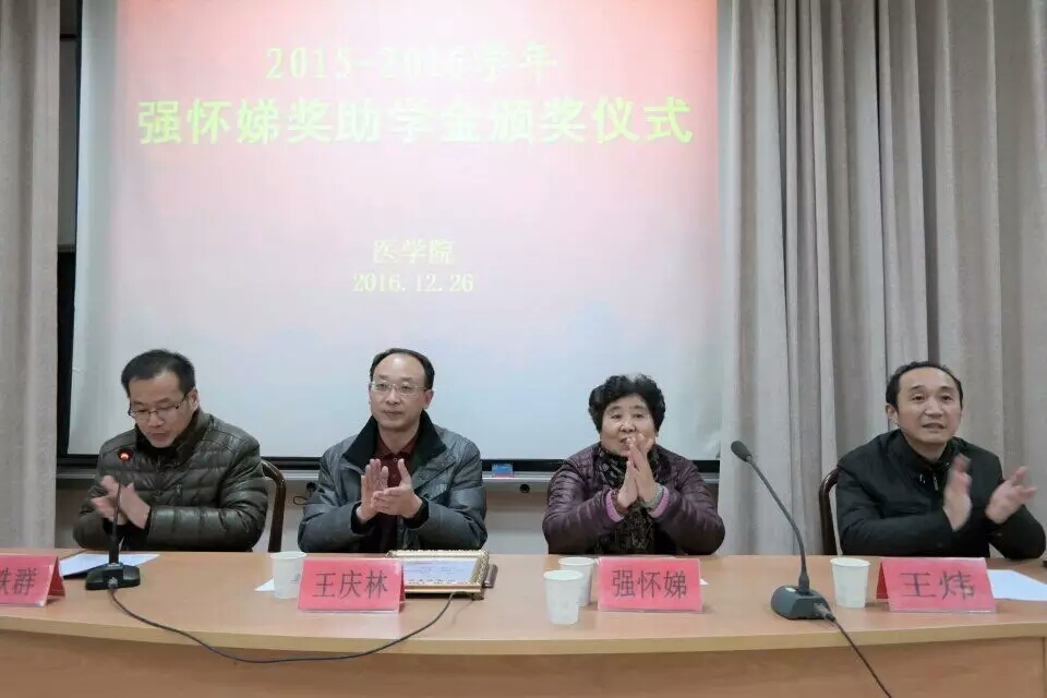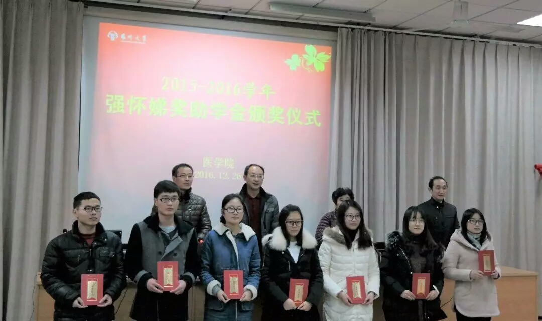 扬州大学医学院强怀娣奖助学金是由我校校友、泰格医药科技股份有限公司董事长叶小平先生于2012年捐资,以其班主任强怀娣老师冠名设立的,每年资助20万元,用于奖励医学院品学兼优的学生。几年来,医学院众多学子获得了强怀娣奖助学金。
