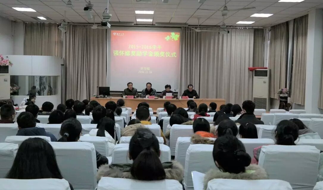 2016年12月26日下午四点,扬州大学医学院2016年强怀娣奖助学金颁奖仪式在淮海路校区医学院报告厅举行。奖助学金冠名者强怀娣老师,扬州大学校友总会、基金会秘书长王庆林,医学院党委书记王炜,党委副书记陈轶群及学院70名获奖同学出席了本次颁奖典礼。颁奖仪式由陈轶群主持。