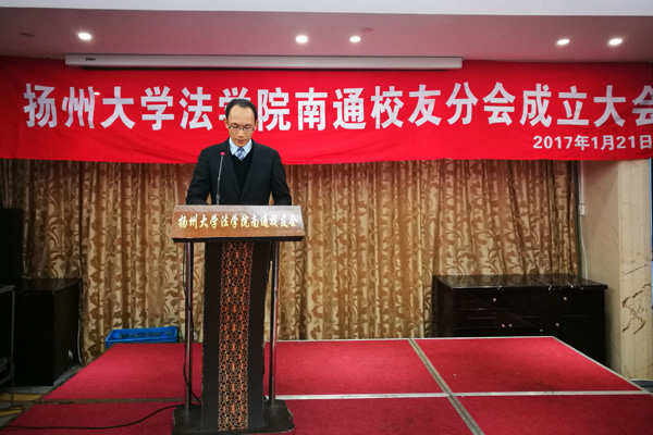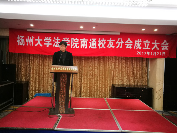 2017年1月21日,扬州大学法学院南通校友分会成立大会在南通隆重召开。校友总会秘书长王庆林、副秘书长王志健、校友工作部部长韦须祥,法学院党委书记孙鹏、院长王承堂、党委副书记花瑞锋、副院长李云波,法学院苏州校友分会副秘书长周伟,法学院教师代表以及来自南通地区的50多名法学院校友出席了成立大会。王庆林和王承堂共同为法学院南通校友分会授牌。成立大会由朱城校友主持。