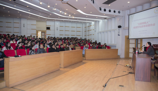 陈淑芳校友30年扎根基层,多次主动放弃调离一线岗位的机会,引领象山县养殖业科学发展,无私抚养两个养殖户的孩子和五个结对助学孩子,在平凡的岗位上做出了不平凡的业绩,先后荣获全国“五一”劳动奖章、浙江省“三八”红旗手,2015年度“最美浙江人——浙江骄傲年度人物”等荣誉称号。对于“陈淑芳”这个名字,学院师生并不陌生,早前,学院曾通过观看根据陈淑芳校友感人事迹改编的微电影《陈芳的抉择》集中学习过她的先进事迹。