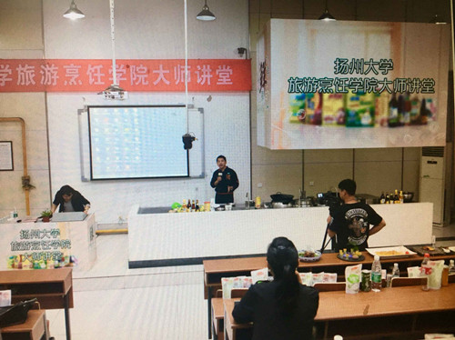 2017年9月20日,旅游烹饪(食品科学与工程)学院在扬子津校区笃行楼N302举行“太太乐大师讲堂”暨鲜味之旅启动仪式。烹饪专业2002届校友、无锡市水上明月酒店行政总厨、上海帆顺餐饮公司出品顾问黄君应邀担任大师讲堂的主讲嘉宾。