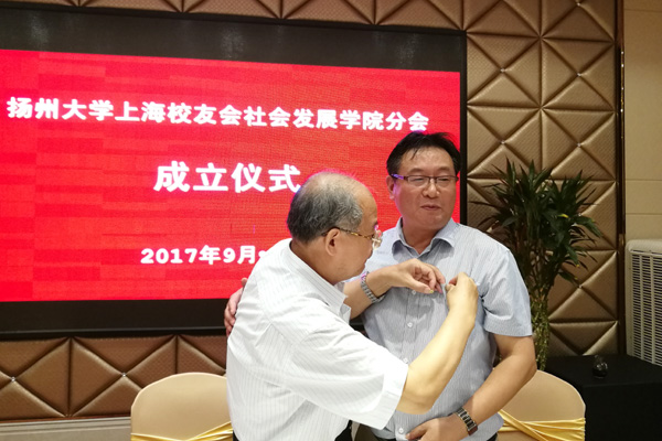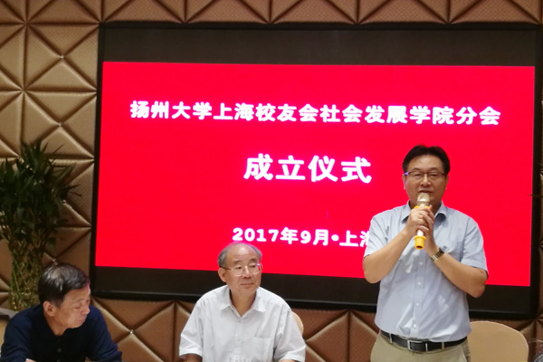 2017年9月24日,社会发展学院上海校友分会在上海举行成立仪式。扬州大学原副校长、原历史系主任周新国,校对外联络工作委员会副秘书长、原历史系副主任秦国华,扬州大学上海校友会名誉会长华强,副会长兼秘书长王勋,校友总会办公室负责人,社会发展学院党委副书记居再宏、综合办公室主任许志俊以及上海校友近30人参加成立仪式。