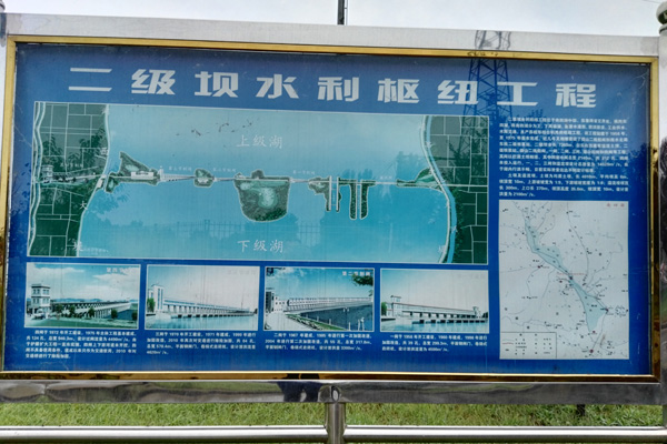 南四湖二级坝水利枢纽工程位于南四湖中段、苏鲁两省交界处,横跨南四湖,将南四湖分为上、下两级湖,是蓄水灌溉、防洪排涝、工业供水、水陆交通、水产养殖等综合利用的水利枢纽工程。