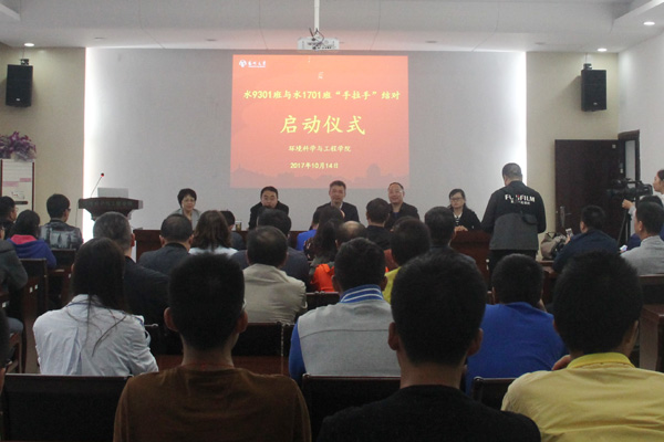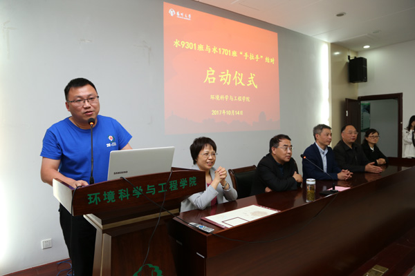 2017年10月14日,水9301班与水1701班“手拉手”结对启动仪式在环境科学与工程学院二楼报告厅举行。水9301班以毕业20周年返校聚会为契机,经过前期精心筹备,与刚入学的新生班级——水1701班达成共建意向。环境科学与工程学院院长何成达、校友工作办公室主任乔庆云、水9301班班主任郑天柱、水1701班班主任鲁梦江、辅导员陈燕,校友总会办公室负责人,水9301班返校校友和水1701班全体同学参加结对启动仪式。仪式由环境科学与工程学院党委副书记张锋主持。