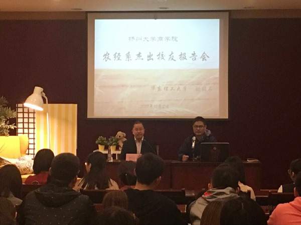 2017年11月2日下午,我校农业经济管理专业2002届校友、华东理工大学商学院研究生导师刘钻石应邀回到母校为商学院农林经济管理专业大二大三全体同学作报告。商学院团委书记廖善光、学工一办辅导员张一卉老师出席报告会。