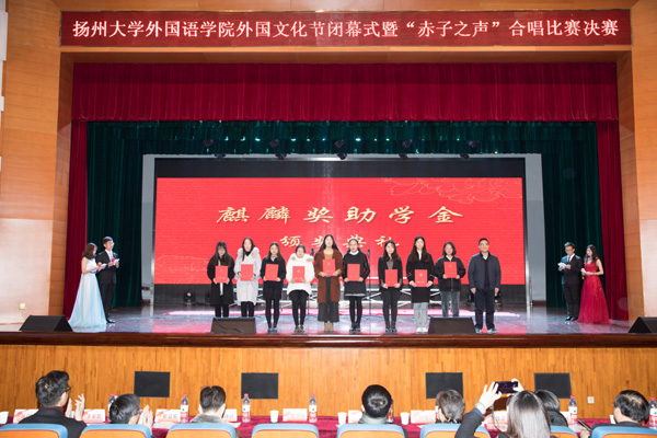 2017年12月9日晚,外国语学院举行首届“麒麟奖助学金”颁奖仪式。“麒麟奖助学金”是我校英语专业2003届校友、青海宏润新能源投资有限公司薛麒麟总经理于2017年5月向母校捐资设立。薛麒麟校友希望以此来表达对母校的感恩之情,同时激励莘莘学子努力学习,艰苦奋斗,实现自己的青春梦想。