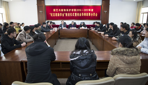 2017年12月9日下午,园艺与植物保护学院在荷花池校区校行政楼一楼报告厅举办了2016-2017学年“纪志君励学金”颁奖仪式暨创业导师故事分享会。纪志君校友,校友总会、基金会秘书长王庆林,园艺与植物保护学院院长刘芳,院关工委副主任、原植物保护系系主任陆自强老师及获奖学生代表等出席颁奖仪式。颁奖仪式由园艺与植物保护学院党委副书记周超主持。