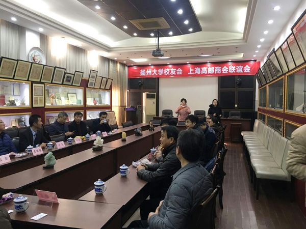 2017年12月17日,在扬州大学上海校友会名誉会长华强的牵线搭桥下,扬州大学校友总会拜访上海高邮商会会长吕焕皋先生,并和上海高邮商会在上海地质科普馆开展互动交流活动。上海高邮商会会长吕焕皋、执行会长俞士忠、秘书长黄桂霞热情接待了扬州大学校友会一行。