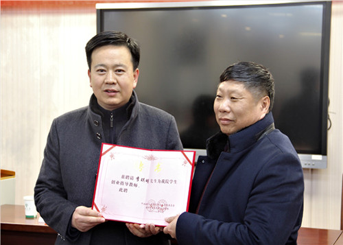 李琪明先生现担任中国民主促进会会员、江苏清琪雅苑文化产业发展有限公司董事长、常州市横山博物馆馆长。李琪明先生长期以来热心公益事业、关心教育发展,此次他向扬州大学教育发展基金会捐赠8万元,在马克思主义学院设立“清琪雅苑奖教金”。佘远富、吴荣军先后向李琪明先生颁发特聘教授聘书、就业创业导师聘书以及捐赠荣誉证书,现场掌声不断。