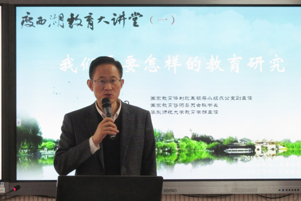2018年3月21日下午,我校校友、国家教育体制改革领导小组办公室副主任、国家教育咨询委员会秘书长、华东师范大学教育学部主任袁振国教授应邀做客学校首期“瘦西湖教育大讲堂”,并作题为“我们需要怎样的教育研究”的学术讲座。