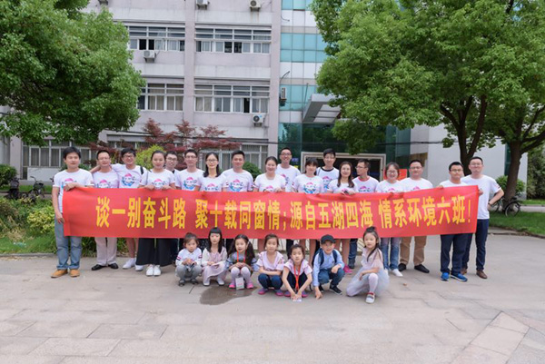 扬州大学环境0406班共有28名同学,20名江苏本省的,8名来自江苏省外。十四年前,因扬州大学一纸录取通知书,源自五湖四海的同学们相聚在环境0406班,将生命轨迹交织在一起;十年前,也是因母校的一纸毕业证书,亲如一家的同学们为了各自的理想,各奔东西,平时虽各有互动联系,却彼此从未集中相聚;今天,还是因为母校的一纸邀请,分散在五湖四海,彼此都收获了事业、爱情的同学们又缘聚在环境0406班,共同庆祝母校建校116周年。