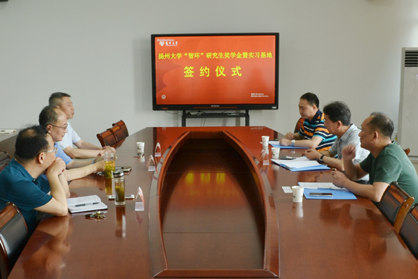 2018年5月16日下午,环境科学与工程学院举行扬州大学“智环”研究生奖学金暨实习基地签约仪式。我校校友、江苏智环科技有限公司董事长霍秀兵,总经理钱诚,副总经理杨俊波,环境科学与工程学院院长何成达、院党委副书记张锋,校友总会、基金会办公室负责人,院团委全体辅导员,研究生代表出席仪式。