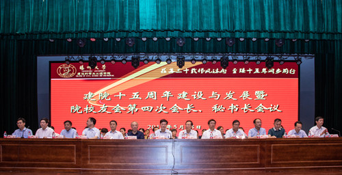 2018年5月18日下午,建筑科学与工程学院在扬子津校区文体馆小剧场召开建院15周年建设与发展暨院校友会第四次会长、秘书长会议。校领导,建工学院老领导、老教师以及全体院领导、教职工、研究生、本科生代表,建工学院14个校友分会会长及秘书长代表、校友代表等600余人参加了此次会议。会议由学院党委书记、院校友会副会长顾建国主持。