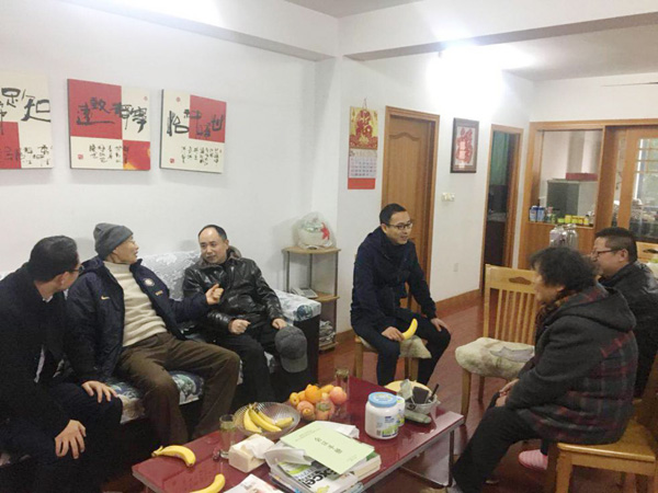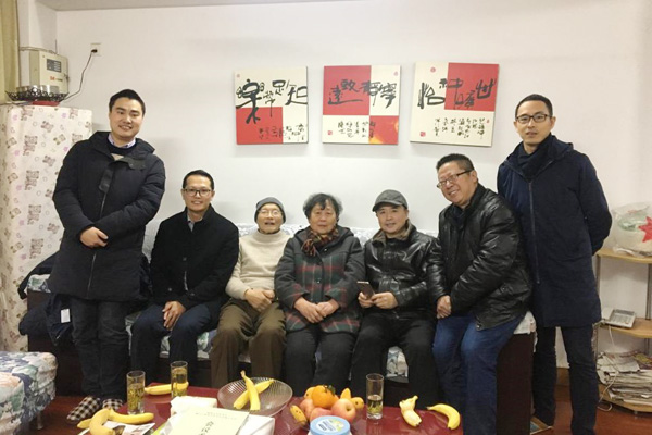 2019年1月12日,陈建康、杨挺、顾庆文、李鑫、朱凤杰一行代表宁波舟山校友会的全体校友,专程到慈溪看望了慈溪中学退休教师邓可敏校友。