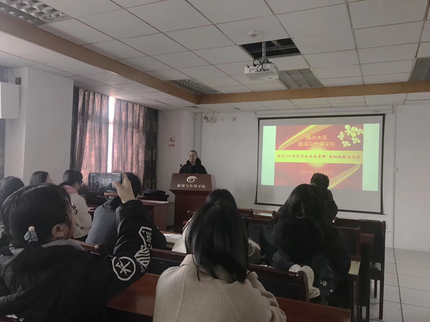 2019年3月12日,新闻与传媒学院在荷花池校区主楼1113教室成功举办了摄影专业2009届校友杨震卿、黄炯的经验分享会。学院摄影专业主任杨健老师出席了本次活动。摄影17班和数媒17班的全体学生参加了本次分享会。