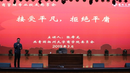 本次活动邀请走出扬大的各位校友回归母校分享择业心得,激发了学生积极思考和规划职业生涯的热情,也教会大学生要懂得打开自己的生命格局,认知自己的社会角色,走出生活的舒适区,走出小我,走向大我。