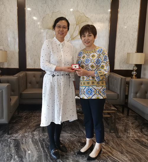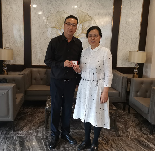 陈耀对方宜新、梅红校友伉俪长期以来关注学校人才培养、大力支持学校事业发展表示衷心感谢,介绍了学校近年来的发展情况和取得的成绩以及校友总会的工作,并为两位杰出校友颁发了校友徽章。