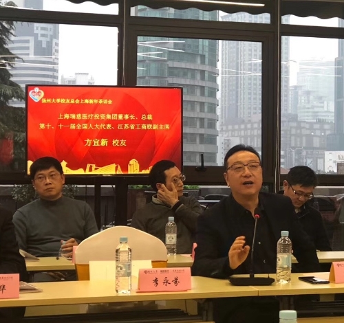 本次活动东道主上海瑞慈医疗投资集团有限公司董事长、临床医学专业1986届校友方宜新回顾了自己的创业历程,他感谢母校的培养,为母校取得的成绩感到骄傲和自豪。