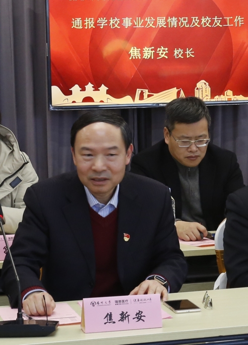 焦新安通报了学校近年来在思想建设、人才培养、学科建设、合作交流等方面取得的一系列丰硕成果,介绍了校友中涌现出来的杰出代表,希望校友们今后继续关心和支持母校的发展,欢迎校友常回母校看看。