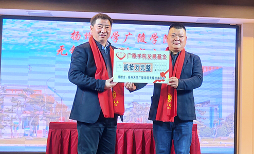 成立仪式上还举行了捐赠仪式,广陵学院无锡校友分会向扬州大学教育发展基金会捐赠20万元,用于广陵学院建设。