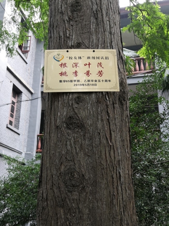 2014年上半年“校友返校季”活动中,校友会启动了“校友林”树木认捐项目,得到了广大校友的热切支持和响应。“校友林”树木认捐项目的推出旨在大力加强校友文化建设,为广大校友感恩母校、回馈母校提供一种表达方式,给美丽的校园增添一道别致的风景线。