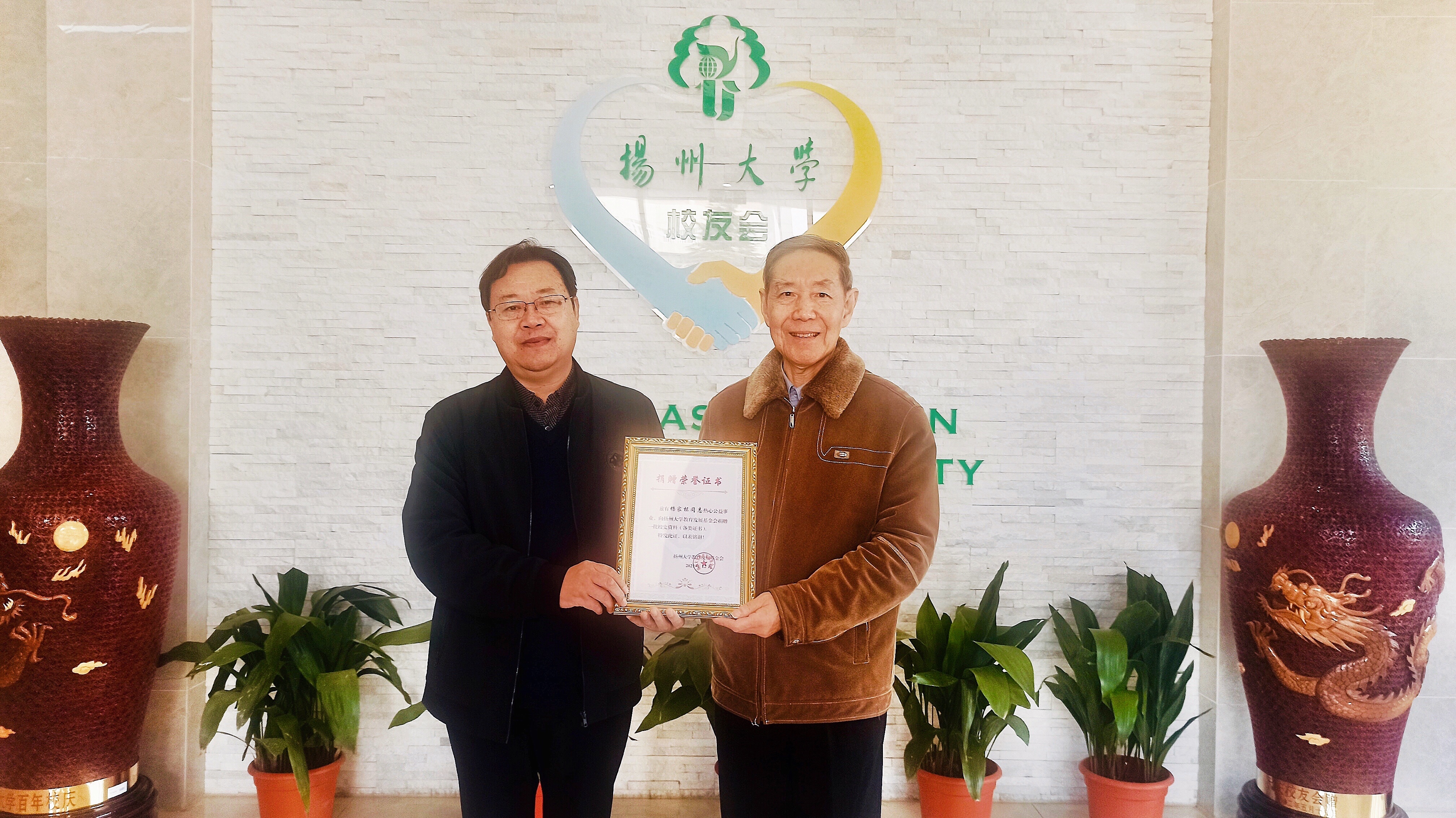 2021年12月6日,扬州大学原副校长杨家栋教授将自己珍藏的一批珍贵的校史资料捐赠给扬州大学档案馆,其中包括钱学森先生的来信,国家级、省级获奖证书,商学院学报,课堂笔记等,希望能为丰富和完善校史档案尽自己的一份微薄之力,为即将到来的120周年校庆献上一份礼物。