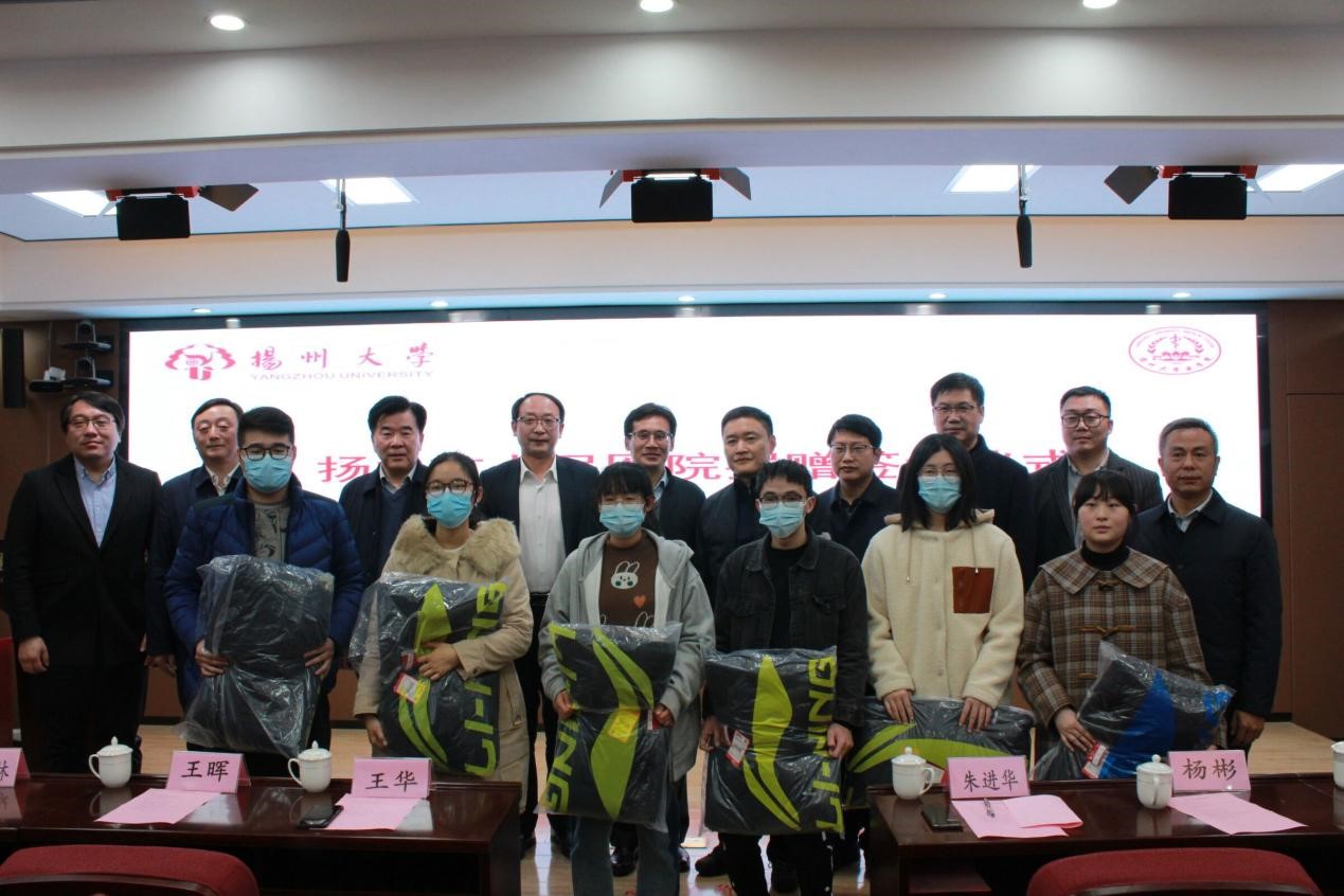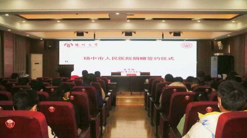 2021年12月8日下午 ,扬中市人民医院向扬州大学医学院捐赠羽绒服签约仪式在江阳路北校区5号楼401报告厅举行。扬中市人民医院党委书记、院长朱进华,纪委书记杨彬,扬州大学学生处副处长、学生资助中心主任王华,扬州大学对外联络办公室副主任、教育发展基金会副秘书长王晖,医学院党政领导和扬中市人民医院相关人员以及受赠学生代表参加活动。仪式由医学院党委副书记花瑞锋主持。