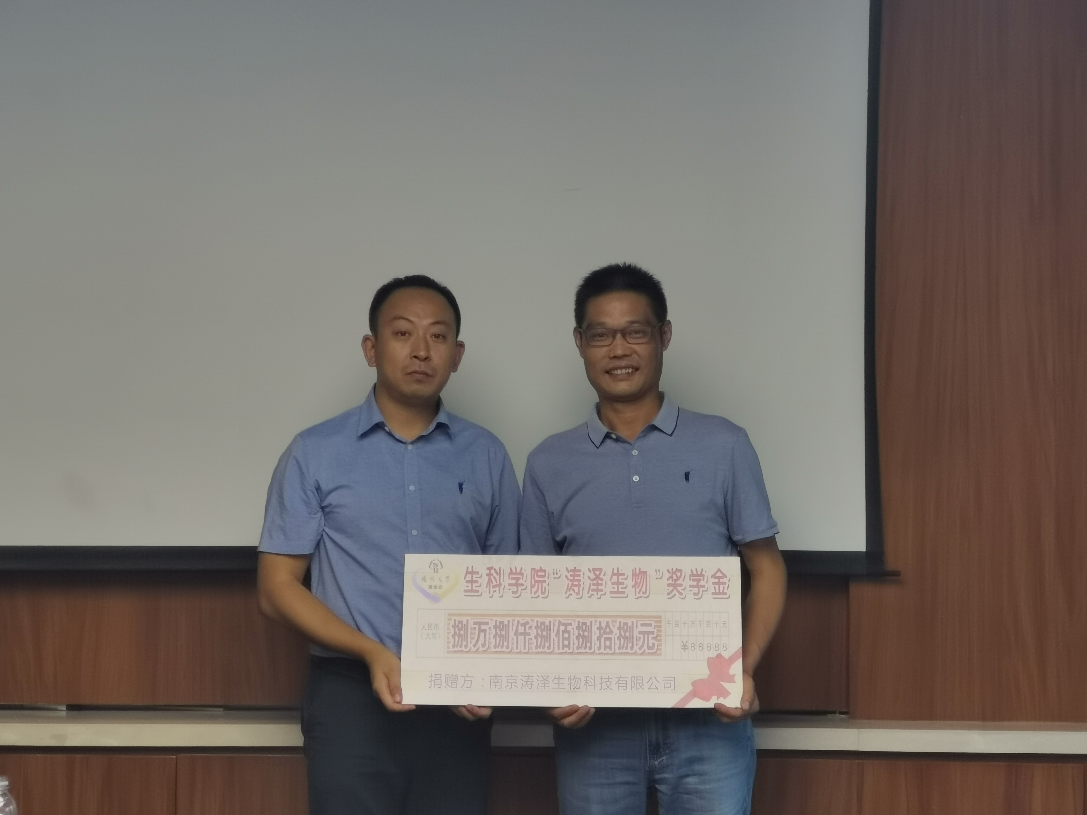 为表达对母校的感恩之情,陆咏校友向扬州大学教育发展基金会捐赠88888元,成立扬州大学生物科学与技术学院“涛泽生物”奖学金,用于表彰生科学院优秀学子,支持学院事业发展。