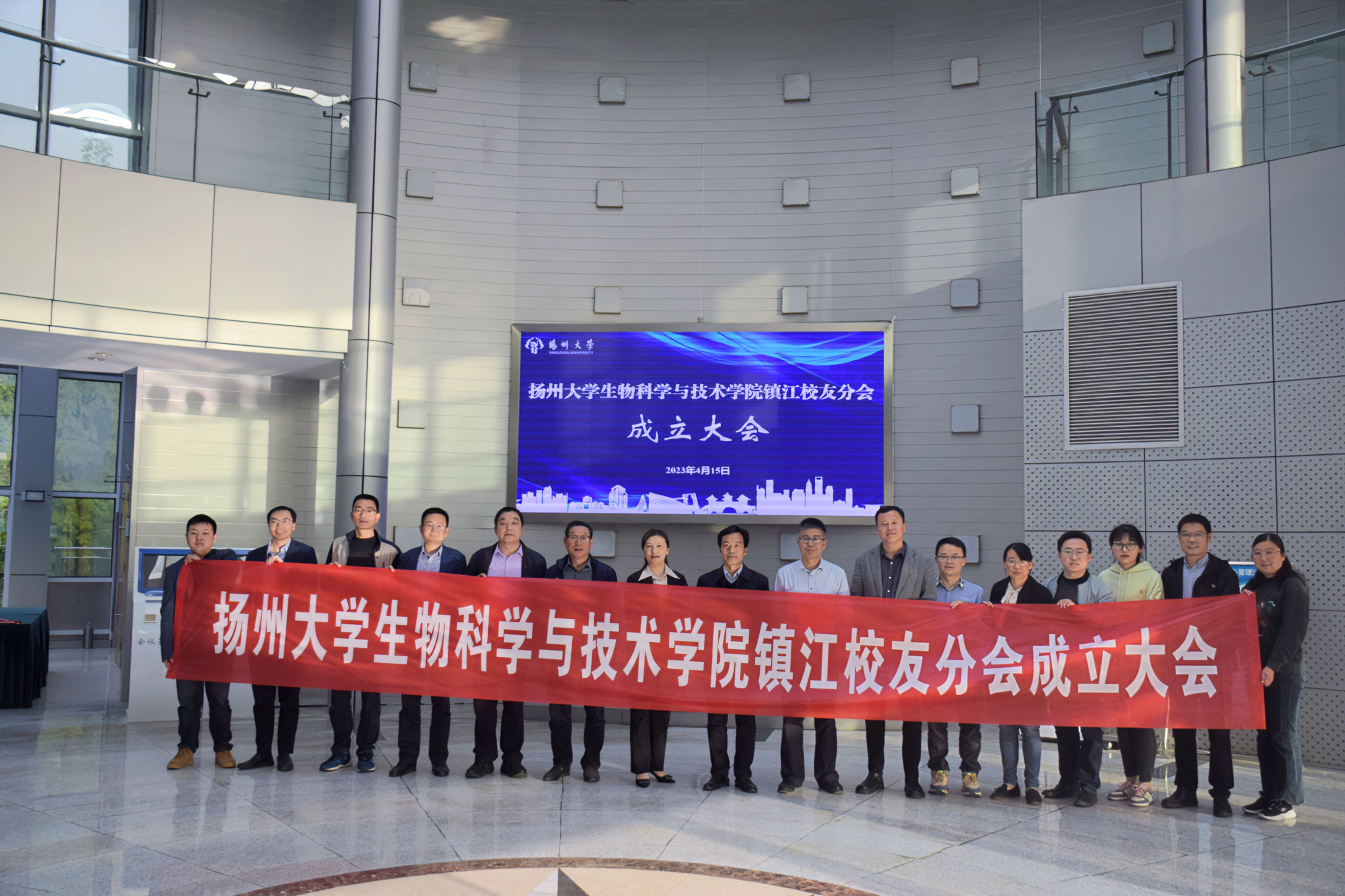 2023年4月15日下午,扬州大学校友会生物科学与技术学院镇江校友分会成立大会在镇江举行。生物科学与技术学院党委书记陆江峰、院长黄金林,扬州大学对外联络办公室(校友会、董事会、教育基金会办公室)副主任王秀琴,生物科学与技术学院党委副书记廖善光以及镇江校友分会拟任理事会成员、教师代表和校友代表欢聚一堂,共同见证扬州大学校友会生物科学与技术学院镇江校友分会的成立。